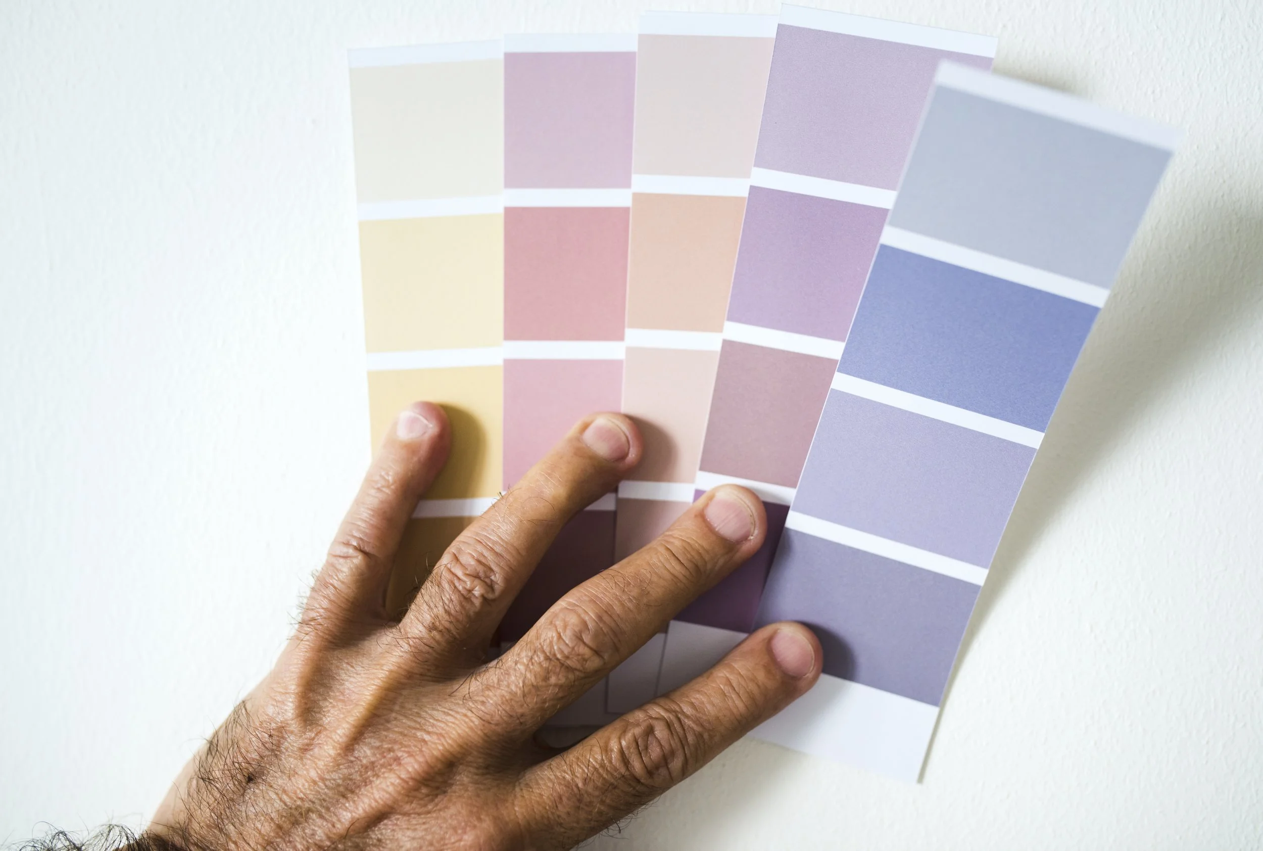 Sofern möglich mit Farbkarten, Stoff- und Vorhangmustern sowie Bodenbelagsmustern
